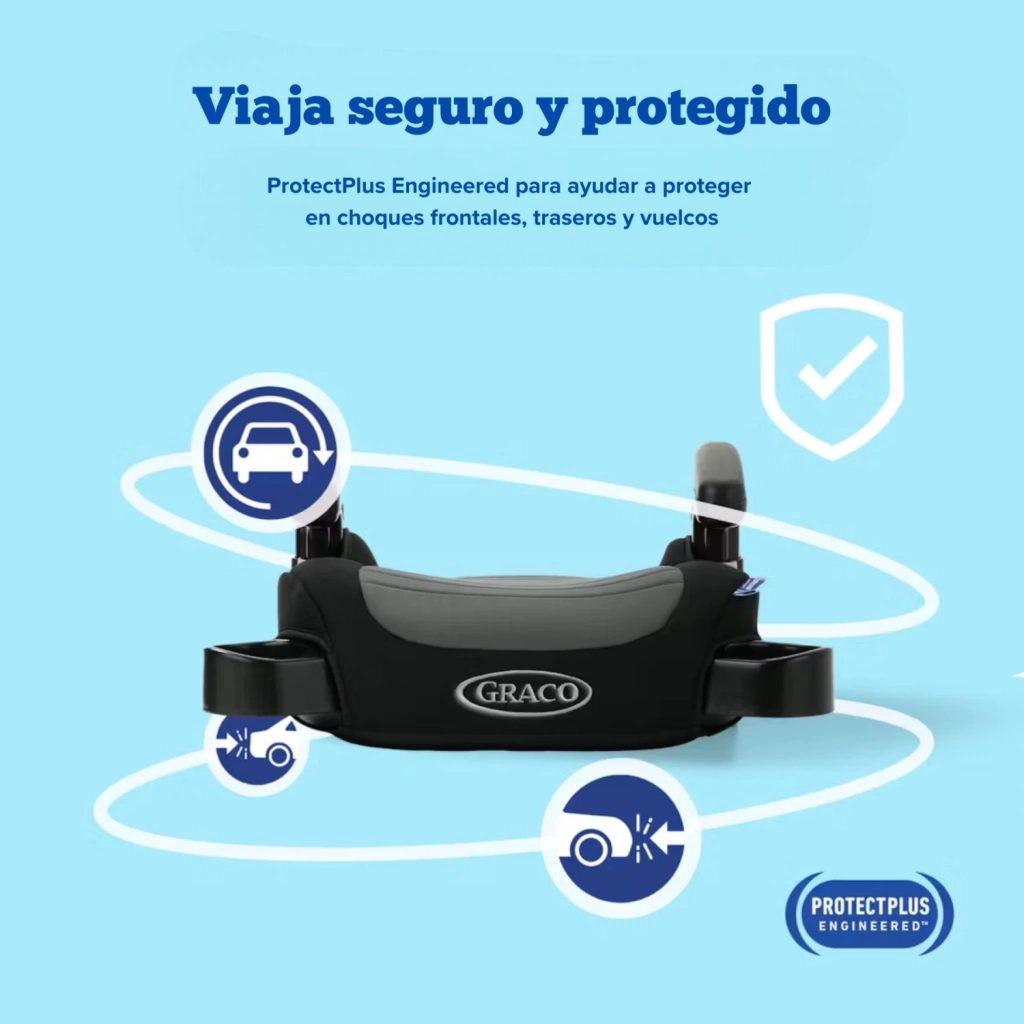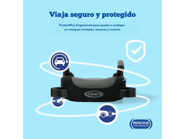 El sistema Graco ProtectPlus ayuda a proteger al niño en impactos frontales, laterales, traseros y en caso de volcadura. Diseñado y probado para cumplir o superar la norma de seguridad FMVSS 213 de EE. UU., este asiento ha sido sometido a rigurosas pruebas de seguridad adicionales: