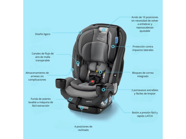 Su estructura reforzada con acero, sistema de ventilación y múltiples ajustes garantizan viajes seguros y confortables en cada etapa.