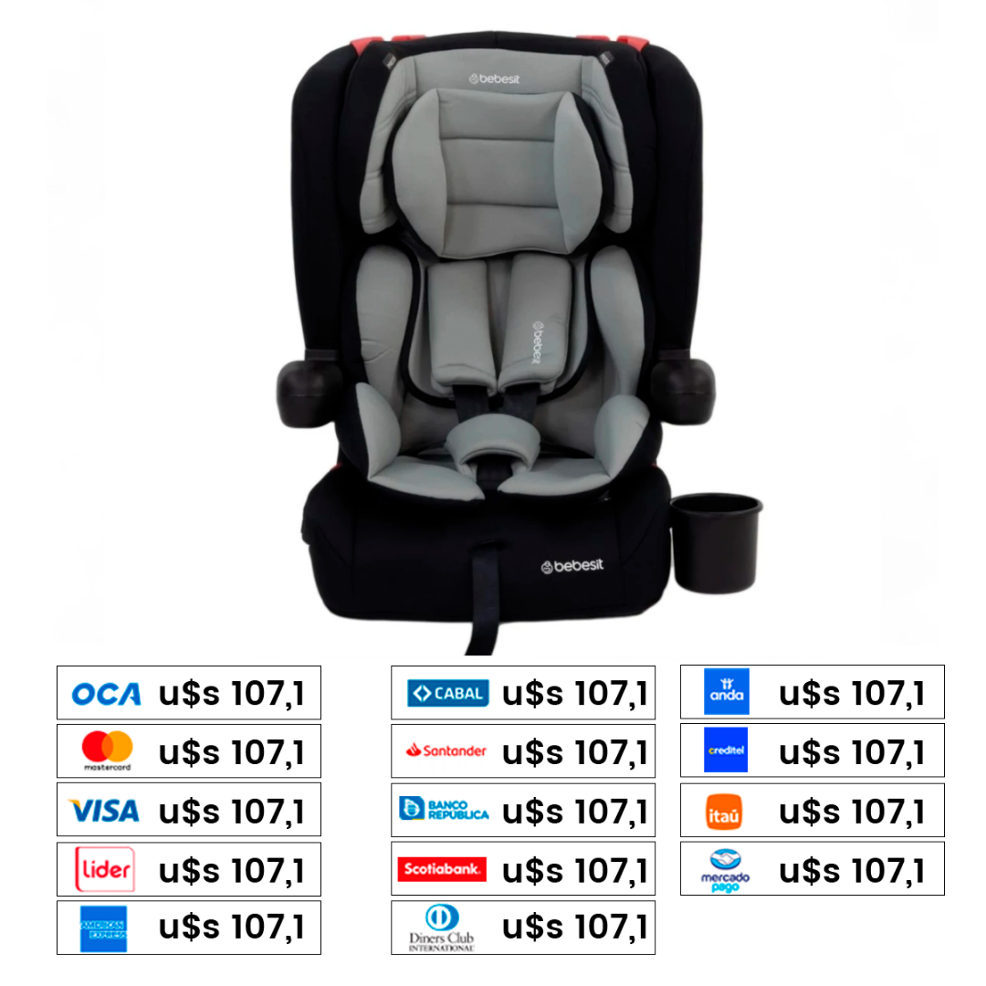 - Grupo 3 (22 a 36 kg): Funciona como booster con respaldo, usando el cinturón del auto.