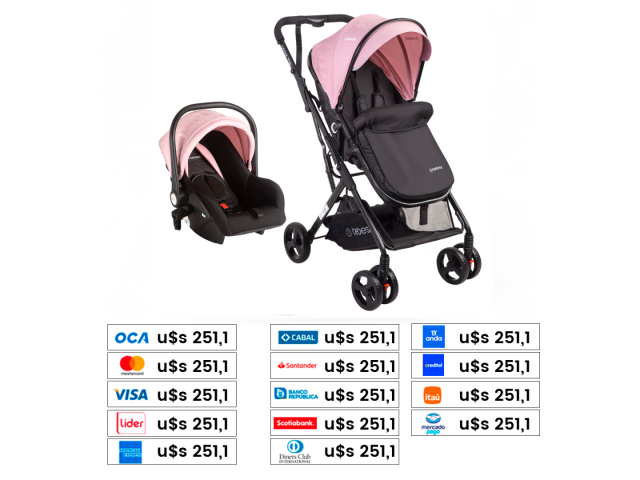 Coche travel system muy liviano, cómodo y fácil de transportar con cubrepies