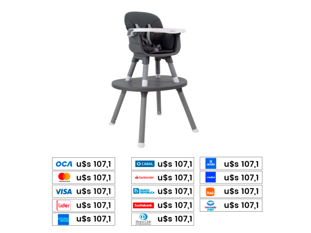 - Diseño 3 en 1: silla de comer, silla independiente y escritorio.