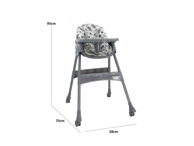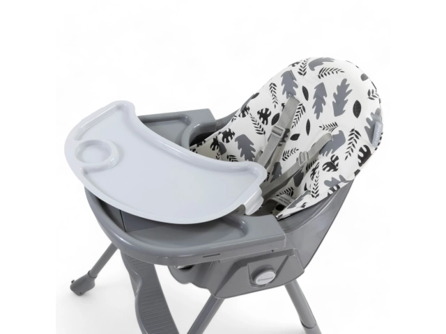La doble bandeja, equipada con un práctico apoya libros o tablet, hace que la hora de la comida sea aún más divertida y versátil. Además, el cinturón de seguridad de 5 puntos garantiza la seguridad de tu pequeño mientras disfruta de sus comidas.