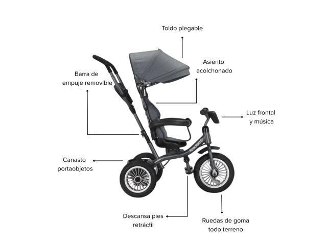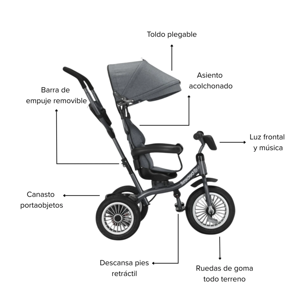 Tres modos de uso: Modo carrito, triciclo auxiliado y triciclo independiente.