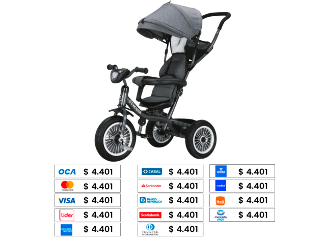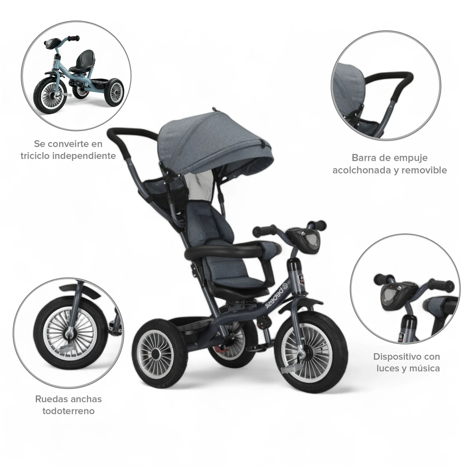 ¡El triciclo perfecto para el crecimiento de tu bebé! Diseñado para adaptarse a cada etapa, el Triciclo 360 Bebesit ofrece diversión, seguridad y comodidad, cumpliendo con la normativa de seguridad europea EN71.