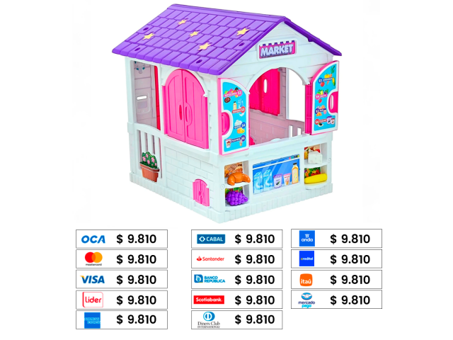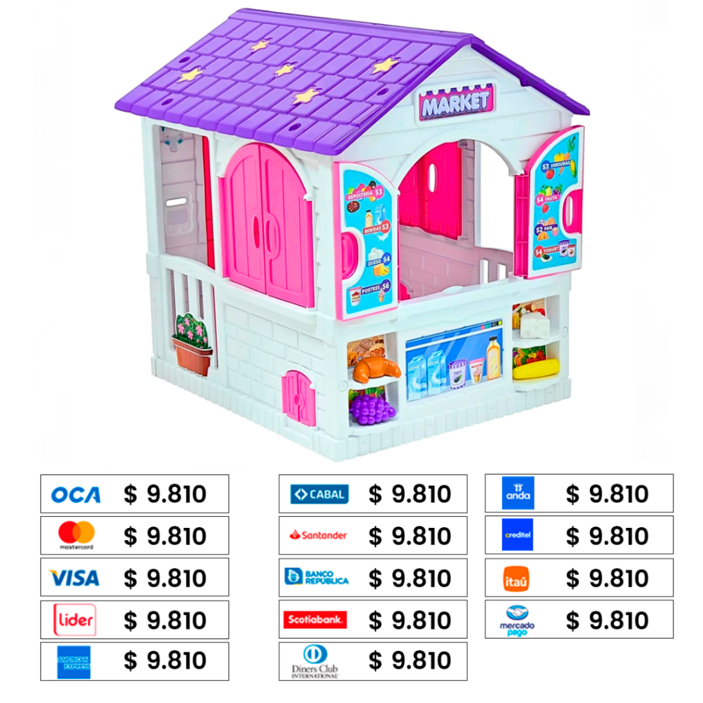Diseño atractivo y funcional: techo con estrellas traslúcidas que permiten la entrada de luz, timbre con luz y tres sonidos diferentes, llave mecánica, faroles iluminados y buzón para recibir cartas. Todo pensado para dar la apariencia de una casita real que cautiva a los niños.