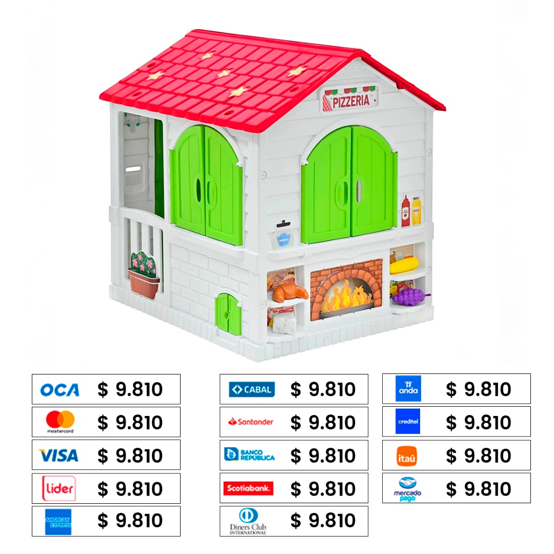 PlayHouse 2 en 1 Prinsel: una encantadora casita infantil que también se convierte en una divertida pizzería. Es el refugio ideal donde la imaginación, el juego y la creatividad no tienen límites. Diseñada para transformar cualquier sala o jardín en un espacio de aventuras, esta casita-pizzería se convierte en el escenario perfecto para que los niños exploren, inventen historias y compartan momentos inolvidables.