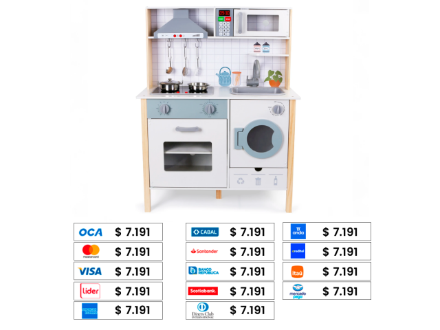 ¡Dejá que la imaginación de los más pequeños se encienda con esta cocina de juguete de madera! Fabricada con madera maciza ecológica y libre de BPA, esta cocina está diseñada para ofrecer horas de juego creativo y seguro. Con un diseño compacto y funcional (94 cm de alto x 70 cm de largo), es perfecta para espacios como guarderías, salitas o rincones de juego en casa.