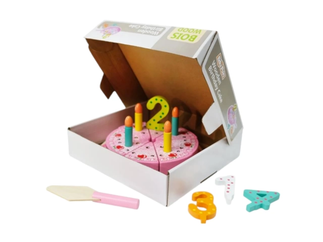 ¡La diversión y el aprendizaje llegan con esta deliciosa Torta de Cumpleaños Didáctica de Madera! Este juguete está diseñado para estimular la creatividad y las habilidades motoras de los niños mientras juegan a celebrar y decorar su propia fiesta de cumpleaños.