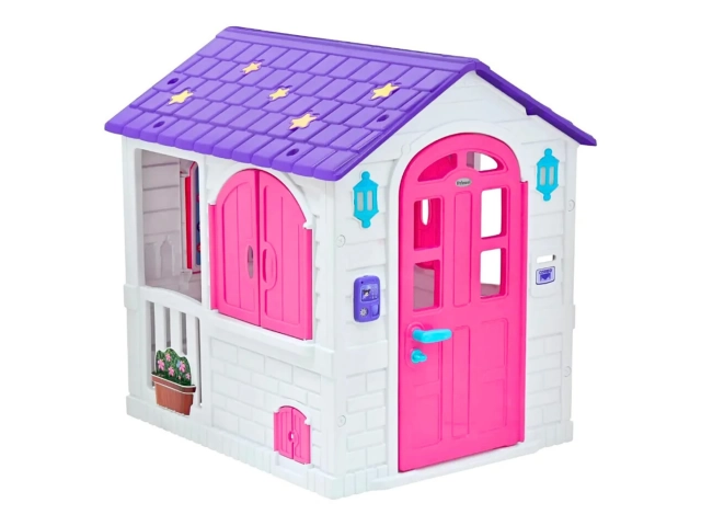 Diseño atractivo y funcional: techo con estrellas traslúcidas que permiten la entrada de luz, timbre con luz y tres sonidos diferentes, llave mecánica, faroles iluminados y buzón para recibir cartas. Todo pensado para dar la apariencia de una casita real que cautiva a los niños.